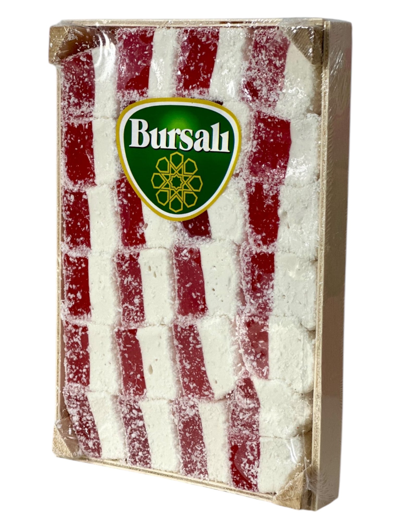 Turkish Delight med granatæblesmag er en lækker, blød og sød konfekt med en frisk og frugtagtig smag af granatæble. Dens fine konsistens og unikke smag gør den til en populær delikatesse fra det tyrkiske køkken.